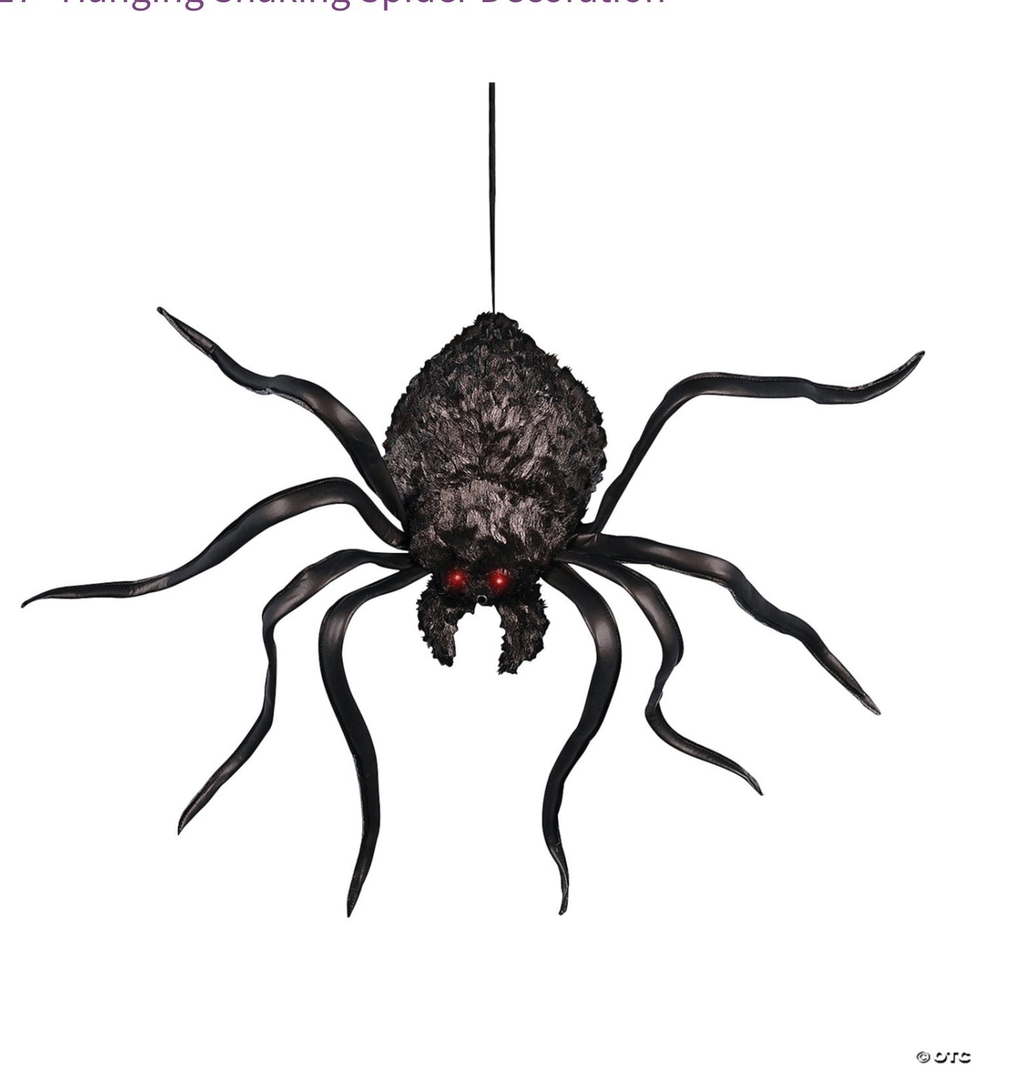 Great addition to your home Halloween decor! Hanging spider boz.and shakes with spooky red, glowing eyes and creepy sounds! Requires 4 AAA batteries not included. Features include spider shaking and bouncing, poseable legs, glowing eyes, and motion and sound activation. Dimensions: 27.56 x 22.05 x 5.51.