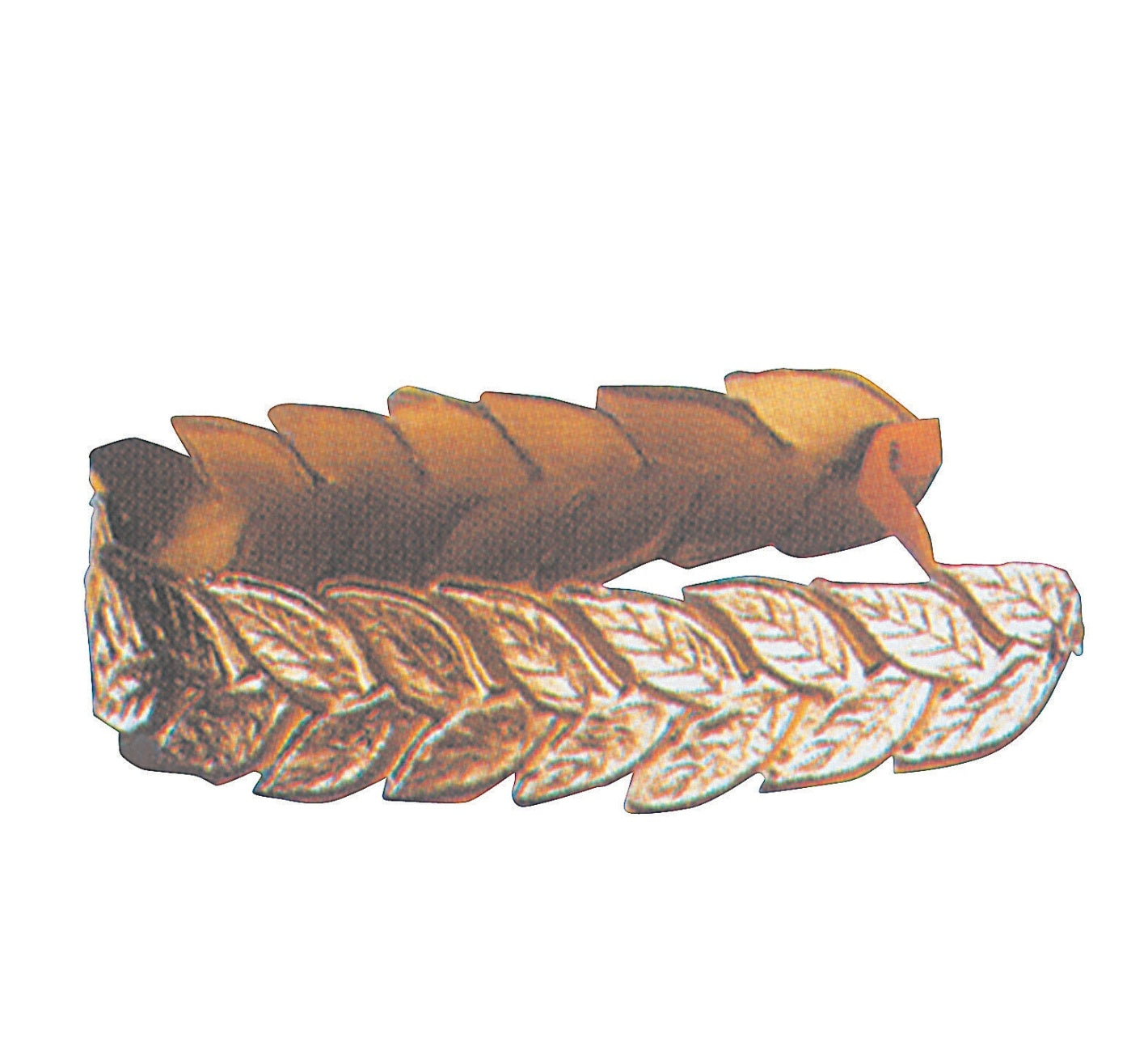 Flexible gold-colored plastic headband with elastic for a comfortable adjustable fit.