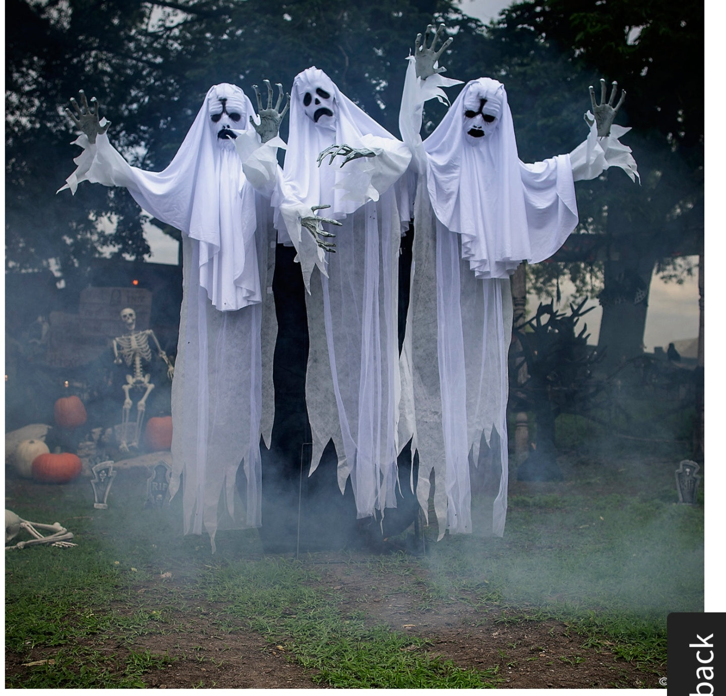 Haunting Ghost Trio will begin moaning as their faces and chests light up with an other-worldly glow as each Ghost sways from side to side, wailing in eternal torment! The infra-red sensor works up to 6.5' feet away and works in all lighting conditions - bright light to no light! Item includes volume control. Easy-to-assemble